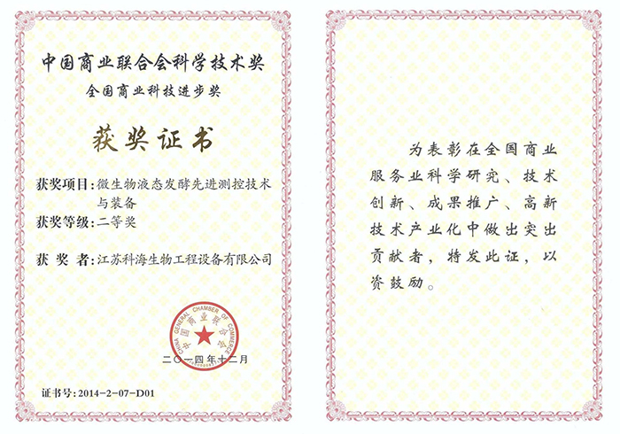 热烈庆祝我热竞技平台下载的“微生物液态发酵先进测控技术与装备”项目荣获全国商业科技进步“二等奖”
